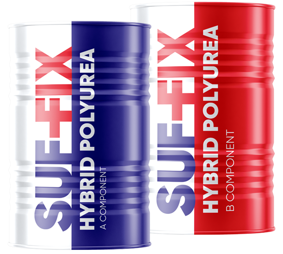 Suf-fix 1070 Standard Hybrid Polyurea is a very fast set, rapid curing, flexible, two component hybrid polyurea system. It is derived from a reaction of an isocyanate prepolymer and an amine terminated resin blend. It can be applied as an economic waterproofing and coating alternative to pure polyurea products. The material must be applied utilizing high pressure, heated plural component spray proportioning equipment. Polyurea HB 1010 conforms to requirements of the EN 1504-2 standard (concrete surface protection systems).