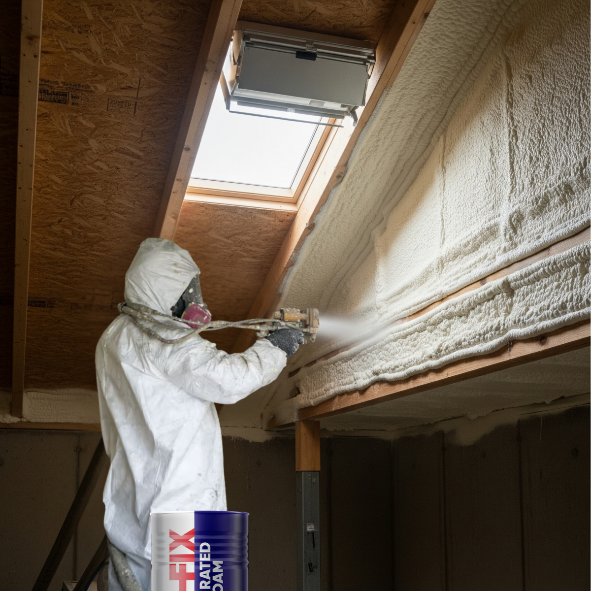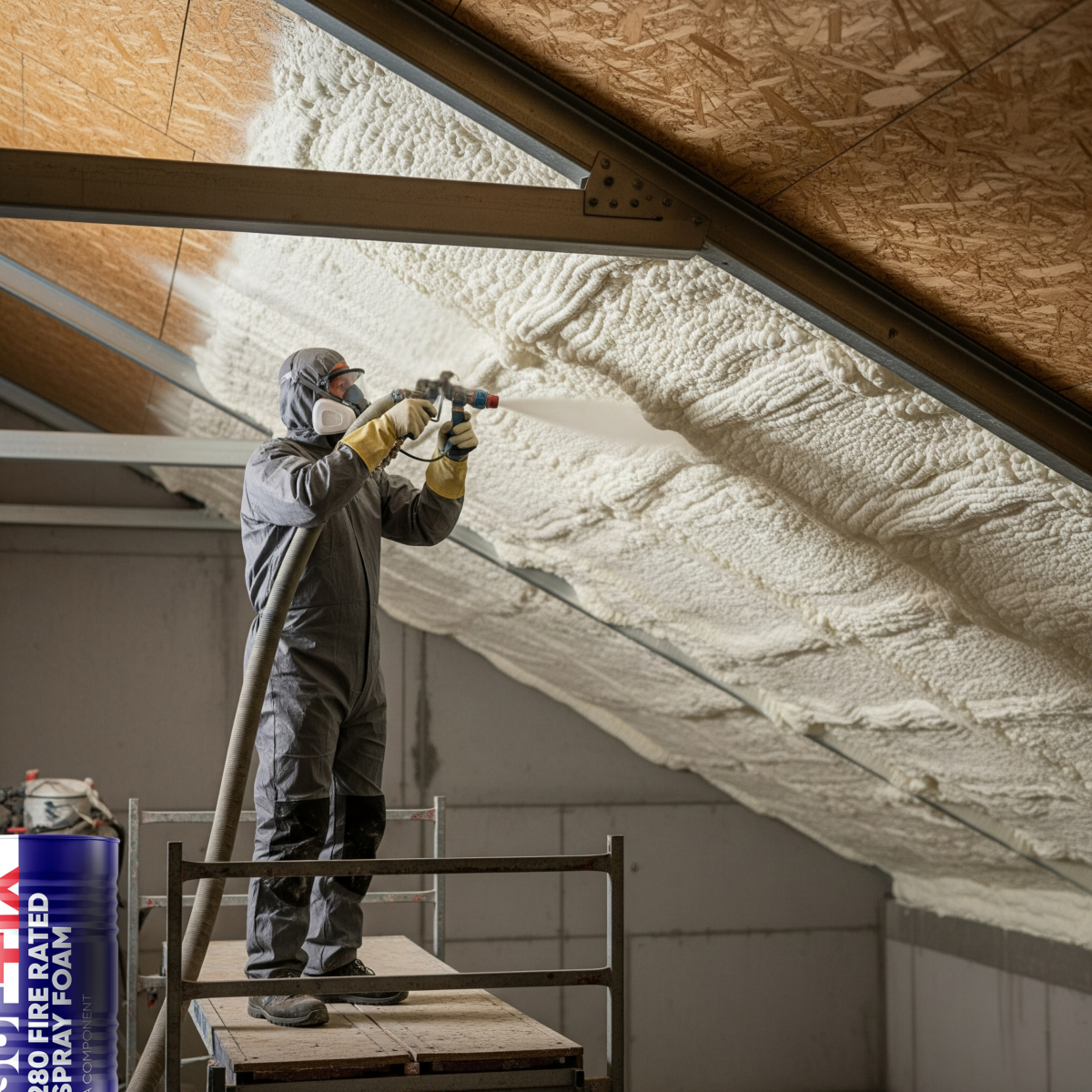 SUF-FIX 280F PU system is designed for spray application of polyurethane foam. The material must be applied with a high-pressure plural component spray polyurethane machine. Resulting foam has excellent physical properties and is classified according to DIN 4102 B1 norm. The foam stability and adhesion to the application surface is excellent. The applied foam density is medium but it can vary according to the numbers of layers and their thickness, atmospheric conditions and type of application (vertical or horizontal). To get a good foam adhesion the surface to be dry, not at too low temperature, cleaned from oil and dust etc. Intended end use in pipeline support, Trench breaker/plug or other general void fill applications requiring fast reactivity. Also, reaction profiles suitable for over the floor, on wall and under the ceiling.